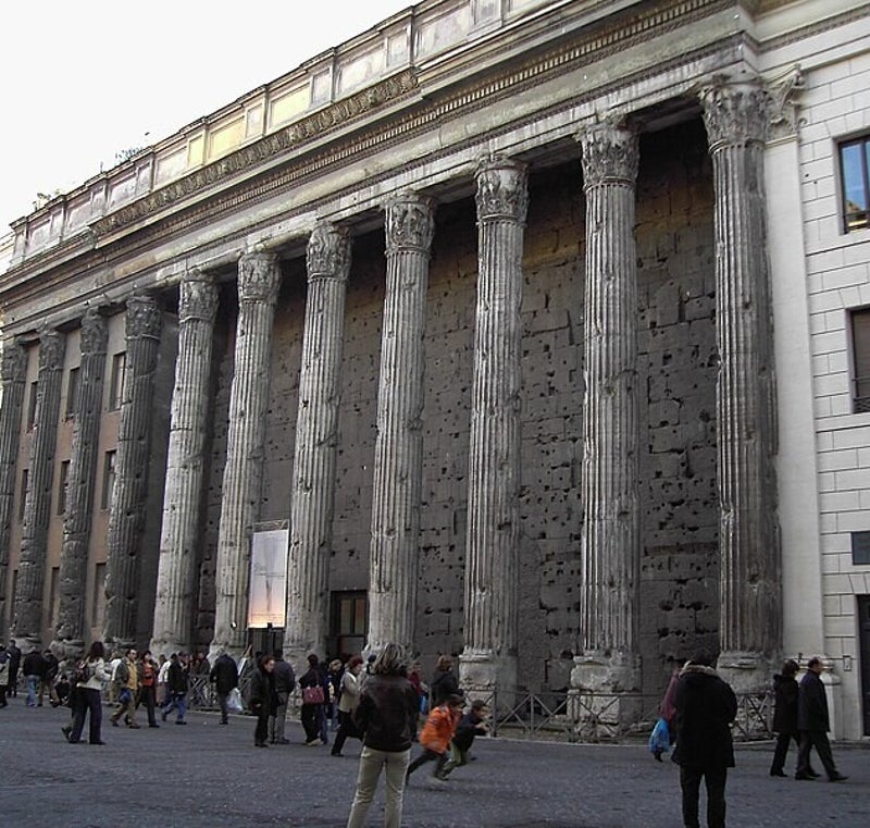 Vom Pantheon bis zur Piazza della Rotonda, rechts in die Via dei Pastini einbiegen, gelangen Sie in wenigen Minuten dorthin Piazza di Pietra, dominiert von der Kolonnade Tempel von Adriano, von Kaiser Antoninus Pius zu Ehren seines Adoptivvaters Hadrian errichtet: Diese Kolonnade wurde Ende des 17. Jahrhunderts vom Architekten Carlo Fontana in den Neubau der Dogana dei Beni di Terra integriert. Im 19. Jahrhundert wurde es zur Börse und schließlich zum Sitz der Handelskammer von Rom.