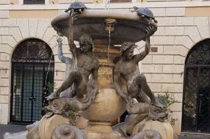 Las cuatro tortugas situadas en el borde de la cuenca superior, atribuidas por la tradición a G.L. Bernini, constituyen una feliz culminación de los trabajos realizados durante la restauración de 1658-59, bajo el pontificado de Alejandro VII (1655-1667), recordados en las inscripciones de los cuatro cartuchos de mármol.