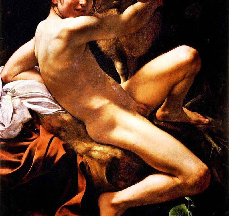 Наконец, мы увидим обе версии Святого Иоанна Крестителя, поскольку вторая хранится в Капитолийских музеях: поза святого заимствована из статуи Микеланджело «Игнуди» в Сикстинской капелле, но фигура приобретает больший объем благодаря эффектам светотени.